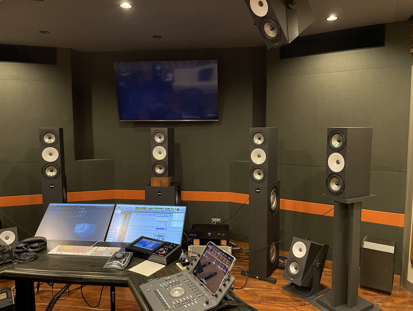 It just sounds right. Many studios are using DSPs and active speakers which can be useful in some specific situations like working in a non-treated room. But in a good studio, I don’t think you need it. I always prefer the sound of an ear-tuned room above a DSP-tuned room except if they use DSP on top of the ear tuning to fill in the last little dead spots. Besides the acoustics, I think they really nailed the entire mixing process and they make it easy – as in the way the desk is set up. Also, I’ve found the TAC system monitor controller the best piece of gear for mixing in ATMOS. You have access to many functions of the renderer, and can switch between different formats at your finger tips – which is good for us but also good for the client. We can flip very easily to binaural with different headphones including the ones from Apple, so it’s easier to get an idea of how it will sound when it will be on Apple’s platform. The room itself is also very cozy and looks absolutely beautiful.